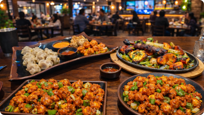 It’s also a solid option for vegetarians. The veg momos, paneer dishes, and noodle options give plant-based eaters plenty to choose from, which isn’t always easy to find late at night.